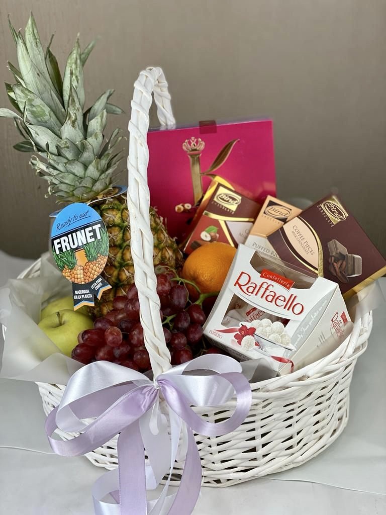 Такие подарки хорошо смотрятся и несут практическую функцию - именинник сможет съесть вкусный сюрприз в любое время и угостить фруктами родных. Такой выбор - отличный вариант для тех, у кого аллергия на цветы.