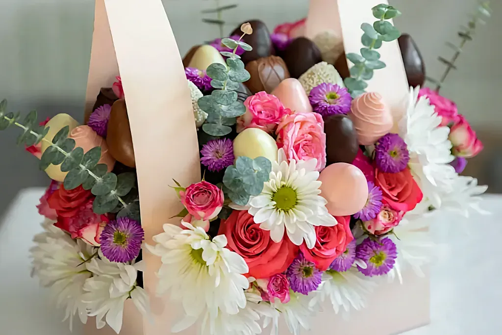 Живые цветы в сочетании со сладким подарком сами по себе являются отличным сюрпризом и способом порадовать своих близких. Отлично, если все эти элементы подарка собираются воедино и оформляются в красивую упаковку, например, это может быть деревянный ящик.