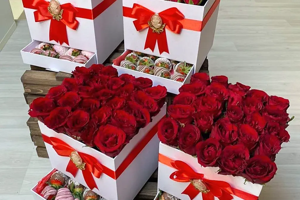 Шкатулки с цветами и клубникой в шоколаде в Березино
