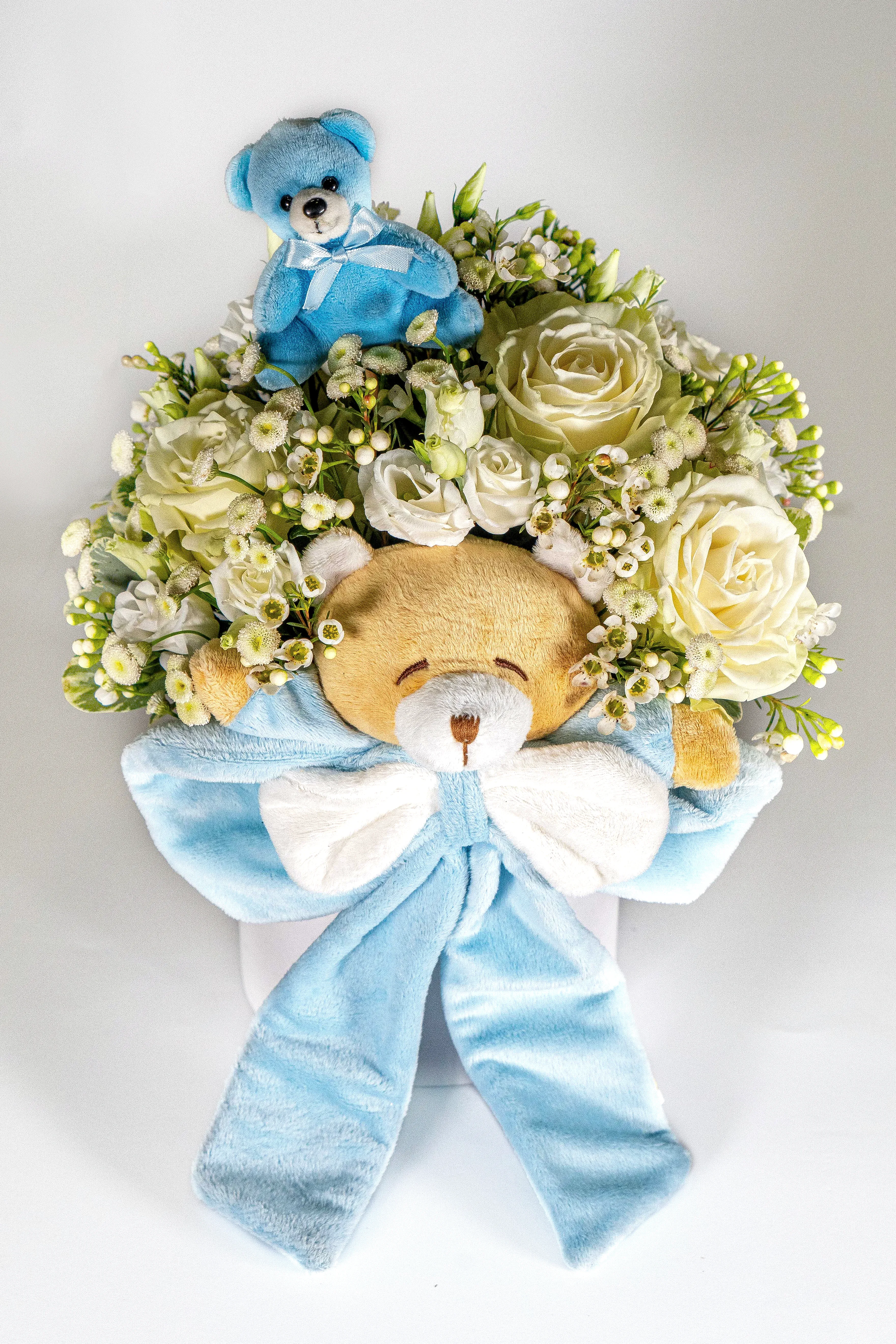 Все топперы, шарики, да и сами цветы упаковываем и оформляем заранее, а затем доставляем в готовом виде с гарантией целостности. Вы можете заказать доставку цветов заранее к себе домой, либо сразу на выписку к роддому – как пожелаете.